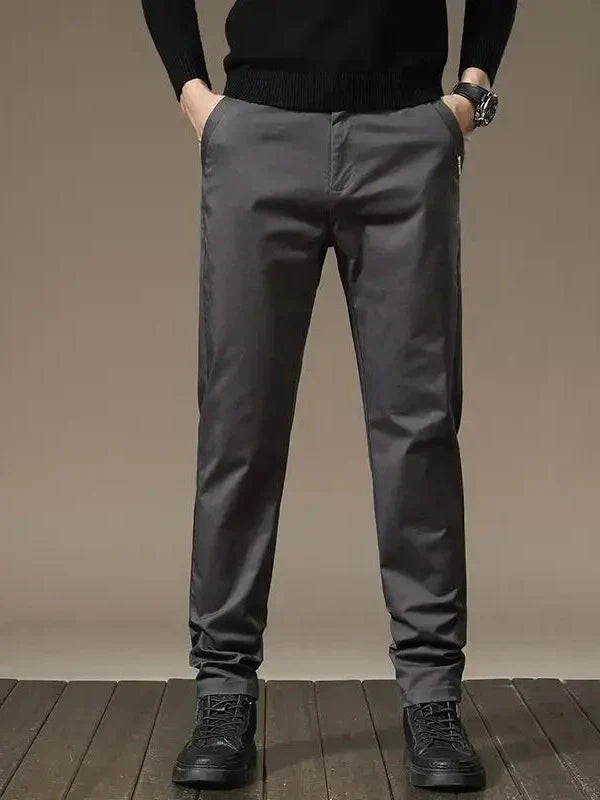 Malthe™ | Lige Basis Bukser fremstår som en sublim forening af tidløs elegance og uovertruffen komfort. Hver detalje vidner om håndværkets omhu: rummelig pasform med en glat drape, nøje udvalgte materialer og en finish, der bevarer sit velplejede udseende gennem sæsoner. Disse bukser udnytter en ren silhuet, der passer til både formelle anledninger og mere afslappede set ups, og de skaber en naturlig følelse af prestige uden overflødig præg. Malthe™ Lige Basis Bukser er mere end en beklædningsgenstand; de er en investering i en garderobe, der holder værdien, tidløst og relevant år efter år. Designet i tæt samarbejde med vores skræddere for at sikre symmetri i sømme, kvalitetsdetaljer og en holdbar konstruktion. Dette gør dem egnet til samlerobjekt-status i garderoben i lang tid.
